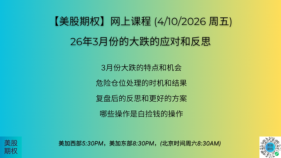 4/10/26课程预告:26年3月份大跌的应对和反思